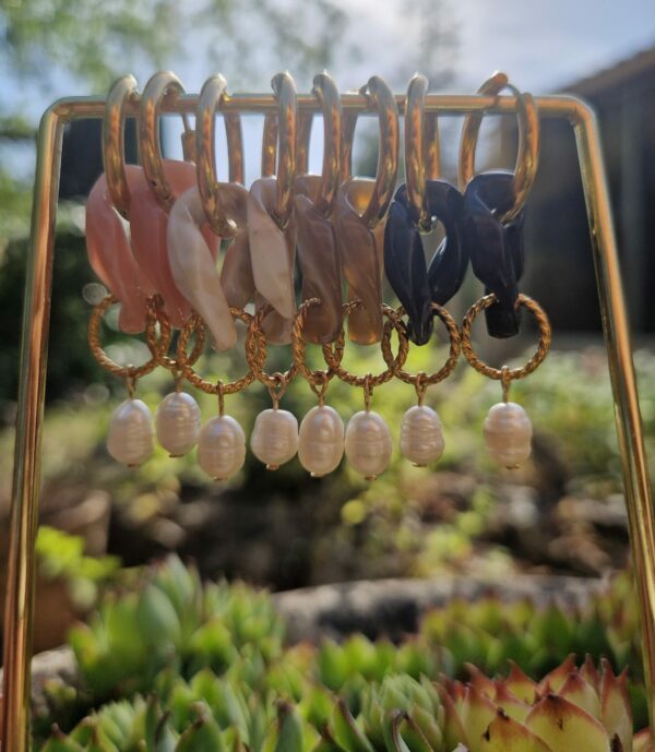 Boucles créoles en acier inoxydable, maillons en acrylique, perles d’eau douce naturelles